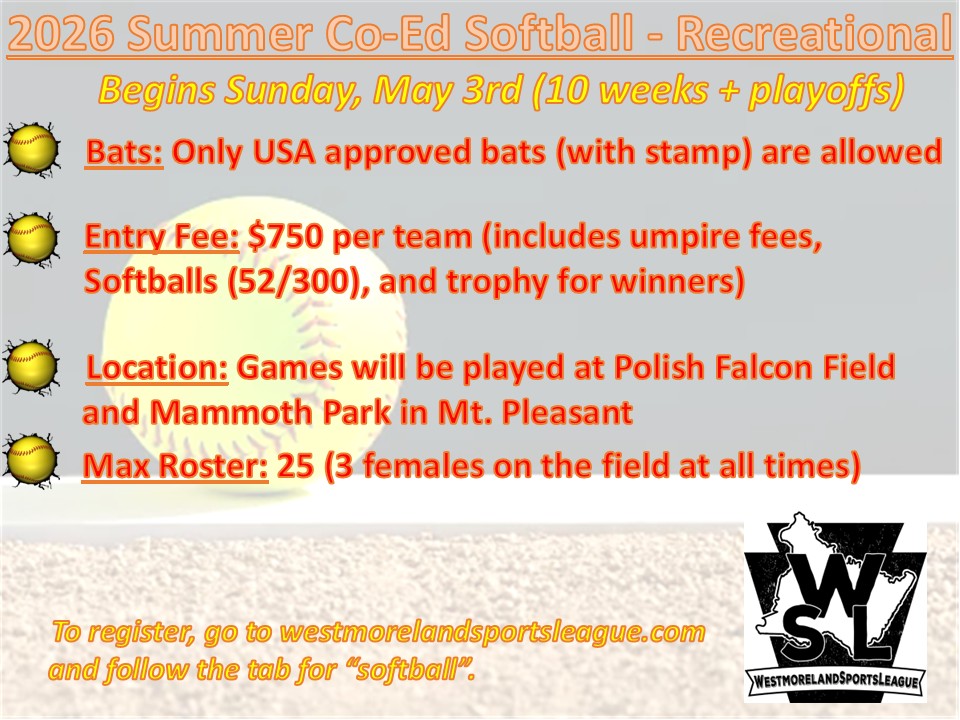 2026 Co-Ed Slow-pitch Softball - Recreational League Softball (Slowpitch) · Co-Ed Intermediate